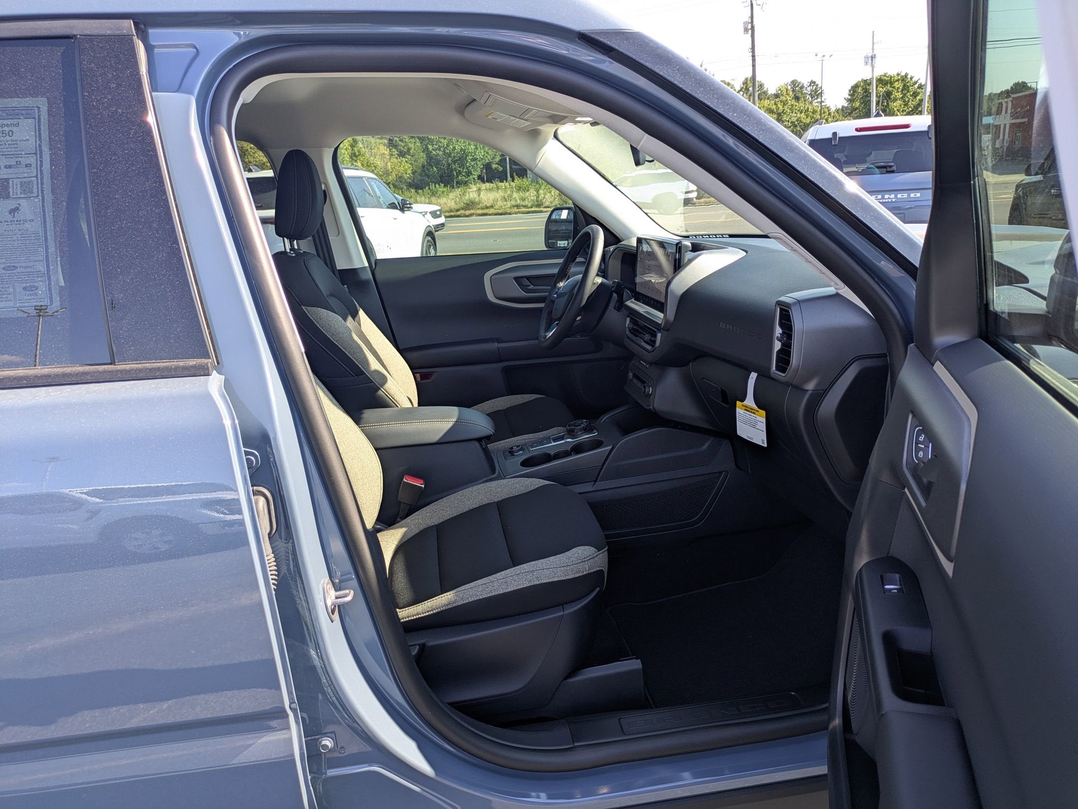 2025 Ford Big Bend Bronco Sport 4-Wheel Disc Brakes, 6 Speakers, ABS brakes, Air Conditioning, Alloy wheels, AM/FM radio: SiriusXM, AM/FM Stereo, Auto High-beam Headlights, Automatic temperature control, Brake assist, Cloth w/Easy-to-Clean Front Bucket Seats, Compass, Convenience Package, Delay-off headlights, Driver door bin, Driver vanity mirror, Dual front impact airbags, Dual front side impact airbags, Electronic Stability Control, Emergency communication system: SYNC 4 911 Assist, Equipment Group 200A, Four wheel independent suspension, Front anti-roll bar, Front Bucket Seats, Front Center Armrest, Front Driver/Passenger Seat Back Map Pockets, Front License Plate Bracket, Front reading lights, Fully automatic headlights, Heated 8-Way Power Driver's Seat, Heated door mirrors, Illuminated entry, Knee airbag, LED Fog Lamps, Low tire pressure warning, Occupant sensing airbag, Outside temperature display, Overhead airbag, Overhead console, Panic alarm, Passenger door bin, Passenger vanity mirror, Power door mirrors, Power steering, Power windows, Premium Wrapped Steering Wheel, Radio data system, Rear anti-roll bar, Rear Parking Sensors, Rear reading lights, Rear seat center armrest, Rear window defroster, Rear window wiper, Remote keyless entry, Security system, SiriusXM, Speed control, Speed-sensing steering, Speed-Sensitive Wipers, Split folding rear seat, Steering wheel mounted audio controls, SYNC 4 w/Enhanced Voice Recognition, Tachometer, Telescoping steering wheel, Tilt steering wheel, Traction control, Trip computer, Universal Garage Door Opener (UGDO), Variably intermittent wipers, Wheels: 17" Carbonized Gray-Painted Aluminum.