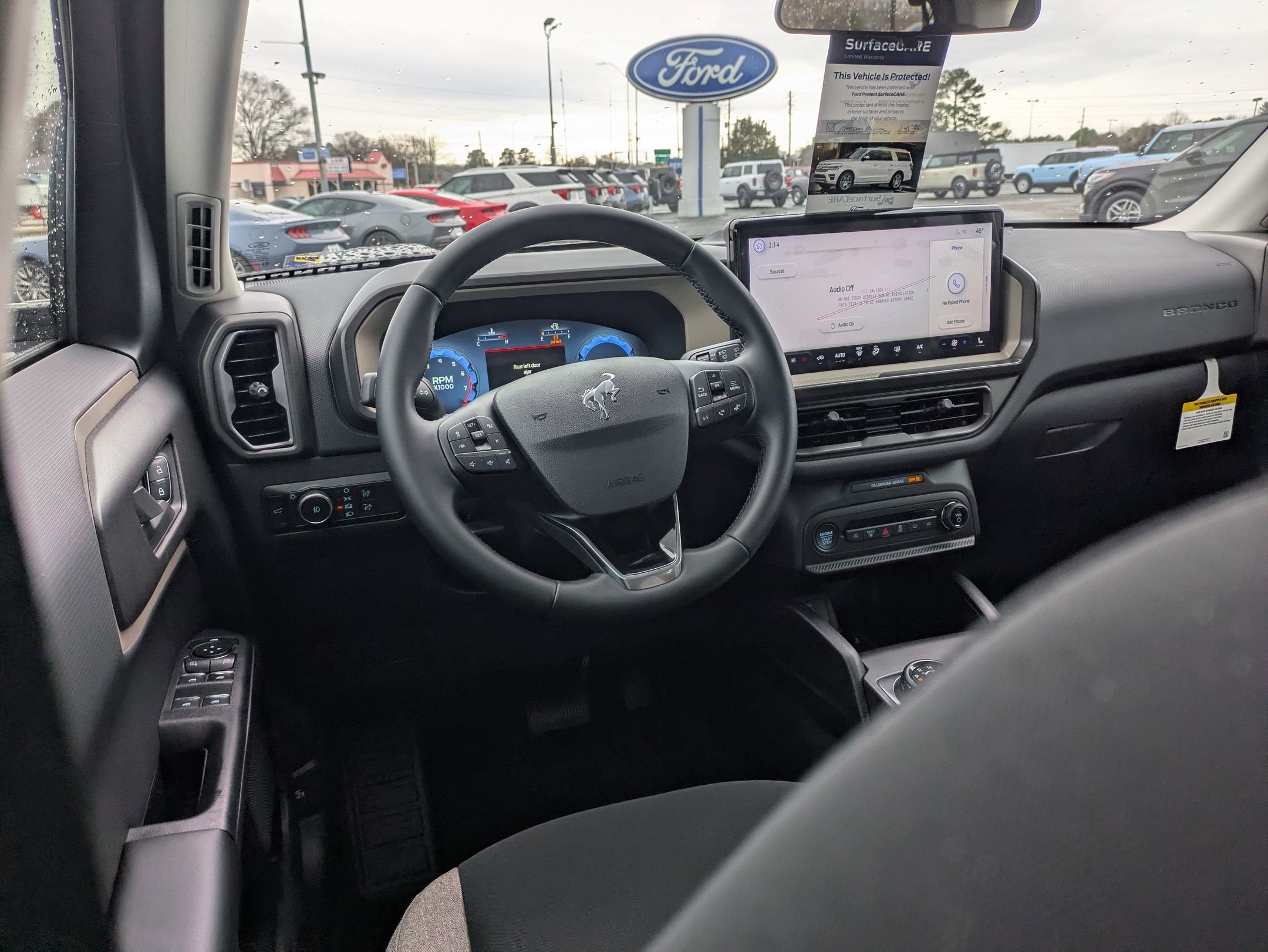 2025 Ford Big Bend Bronco Sport 4-Wheel Disc Brakes, 6 Speakers, ABS brakes, Air Conditioning, Alloy wheels, AM/FM radio: SiriusXM, AM/FM Stereo, Auto High-beam Headlights, Automatic temperature control, Brake assist, Cloth w/Easy-to-Clean Front Bucket Seats, Compass, Convenience Package, Delay-off headlights, Driver door bin, Driver vanity mirror, Dual front impact airbags, Dual front side impact airbags, Electronic Stability Control, Emergency communication system: SYNC 4 911 Assist, Equipment Group 200A, Four wheel independent suspension, Front anti-roll bar, Front Bucket Seats, Front Center Armrest, Front Driver/Passenger Seat Back Map Pockets, Front License Plate Bracket, Front reading lights, Fully automatic headlights, Heated 8-Way Power Driver's Seat, Heated door mirrors, Illuminated entry, Knee airbag, LED Fog Lamps, Low tire pressure warning, Occupant sensing airbag, Outside temperature display, Overhead airbag, Overhead console, Panic alarm, Passenger door bin, Passenger vanity mirror, Power door mirrors, Power steering, Power windows, Premium Wrapped Steering Wheel, Radio data system, Rear anti-roll bar, Rear Parking Sensors, Rear reading lights, Rear seat center armrest, Rear window defroster, Rear window wiper, Remote keyless entry, Security system, SiriusXM, Speed control, Speed-sensing steering, Speed-Sensitive Wipers, Split folding rear seat, Steering wheel mounted audio controls, SYNC 4 w/Enhanced Voice Recognition, Tachometer, Telescoping steering wheel, Tilt steering wheel, Traction control, Trip computer, Universal Garage Door Opener (UGDO), Variably intermittent wipers, Wheels: 17 Carbonized Gray-Painted Aluminum.
