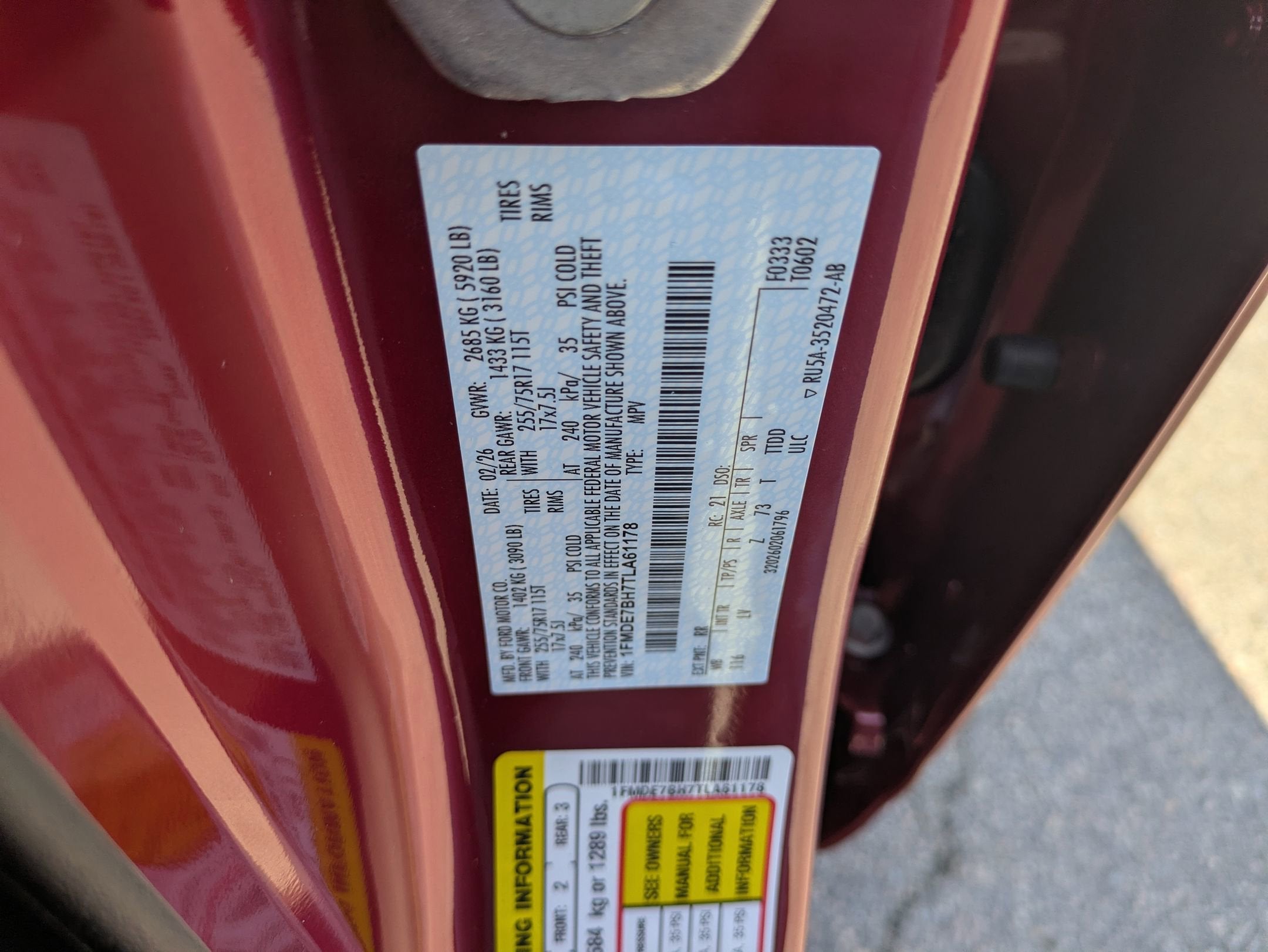 - Gross Vehicle Weight Rating Cap (lbs): 5920