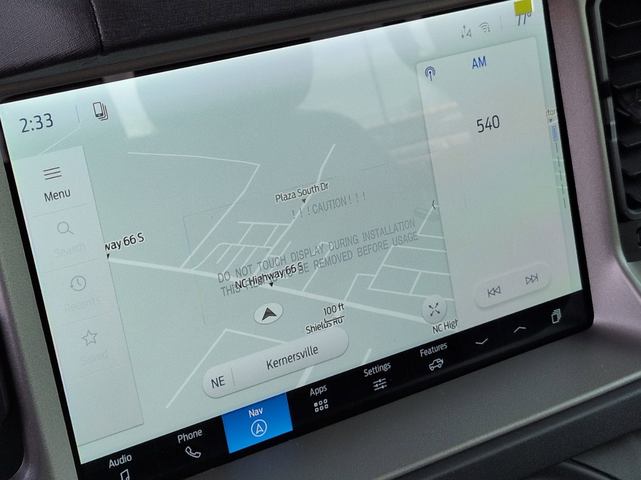 - Connected Navigation -inc: Ford connectivity package, pinch-to-zoom capability, live traffic, predictive destinations and route guidance and One Box search