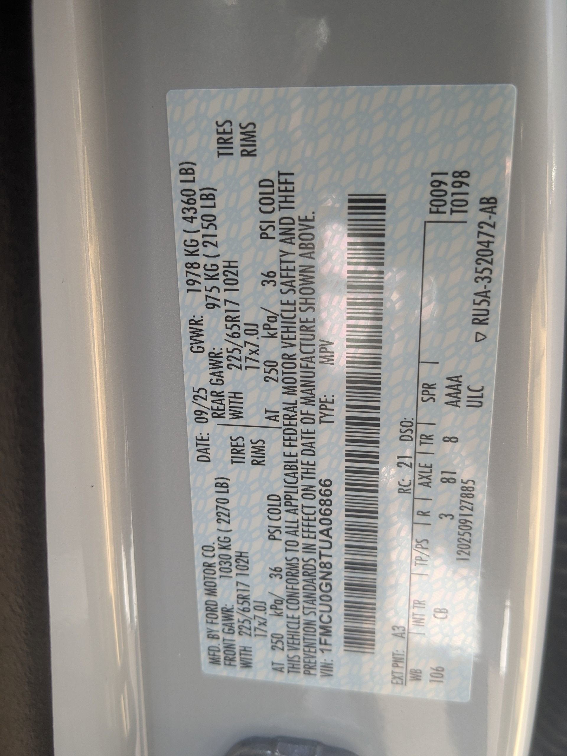 - Vehicle Name: Ford Escape