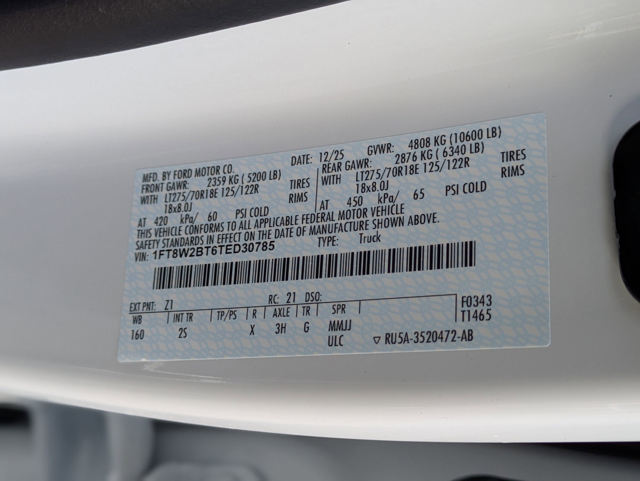 - Rear Tire Size: LT275/65SR18