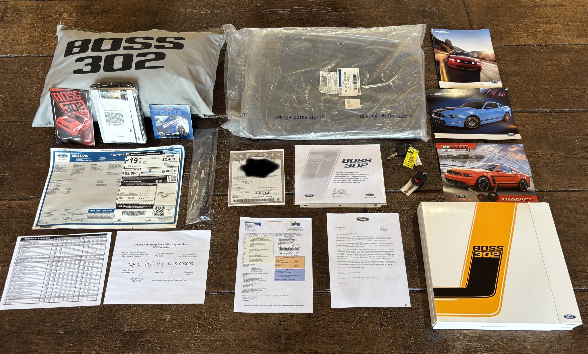 Original Extras: The window sticker confirms this car was ordered with the Boss car cover and specialized Boss floor mats.